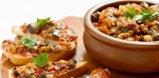 ბოსტნეულის უგემრიელესი ხიზილალა ბადრიჯნით, ვაშლით, პომიდვრითა და ბულგარული წიწაკით