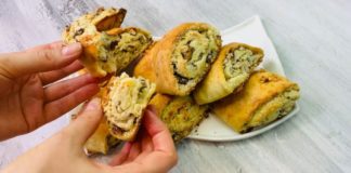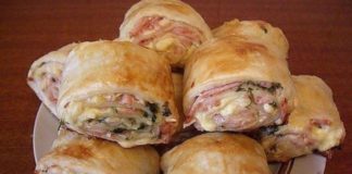 ძეხვის, ყველისა და მწვანილის შიგთავსით გაჯერებული ხრაშუნა რულეტი უმარტივესი მოსამზადებელია