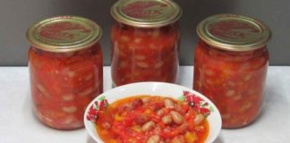 ლობიო ტომატის სოუსში ზამთრისათვის. გემრიელობა, რომელსაც ყოველ წელს ვამზადებ