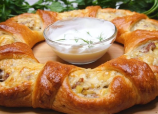 ხორცის, კარტოფილის, ყველის წვნიანი შიგთავსითა და ნაზი ცომის კომბინაციით მომზადებული გვირგვინის ფორმის ნოყიერი, არომატული ღვეზელი უბრალოდ ზღაპარია, რომელიც დაამშვენებს სადღესასწაულო სუფრას.